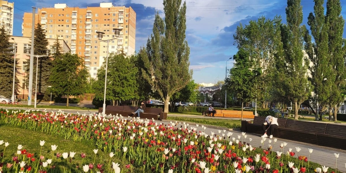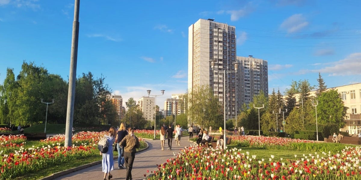 Die Hochhäuser sind modern und komfortabel, auf den erstaunlichen Kinder- und Sportplätzen im Innenhof können die Kinder schön spielen und die Erwachsenen Sport treiben. Die ganze Infrastruktur – Geschäfte, Supermärkte, moderne Frisiersalons – gibt es dort selbstredend auch. Und zwei Stationen entfernt gibt es sogar einen zauberhaften Wald mit frischer Luft, hohen Bäumen, perfekten breiten Gehwegen und hölzernen Liegebänken. Idealer Ort für das schöne Stadtleben (für diejenigen, die viel Wert auf Komfort legen)!