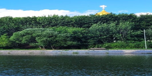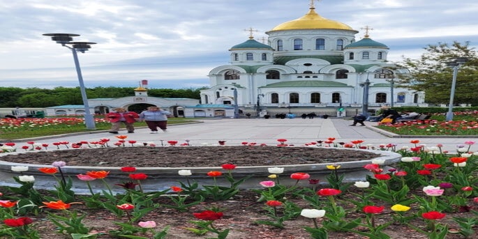 Das Stadtviertel ist richtig sauber und ordentlich, es gibt breite Gehwege für abendliche Spaziergänge, einen schönen Teich mit Enten und spezieller Beleuchtung, es gibt sogar eine russische orthodox-christliche Weißsteinkirche, in die meine Mutter geht.