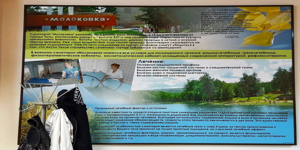 Also allein die Natur in Molokowka kann die Gesundheit der Kurgäste positiv beeinflussen. Das ist aber selbstredend nicht das Einzige, was die Kur anbietet. Eine der einzigartigen Prozeduren ist die mit dem sogenannten Radonwasser, dessen chemische Zusammensetzung ebenfalls sehr wohltuend auf den Körper wirkt. Eine der weiteren Behandlungen, die mein Vater unter anderem genießen konnte, wird mithilfe des Heilschlamms aus dem heilkräftigen See Ugdan (Угда́н) durchgeführt.